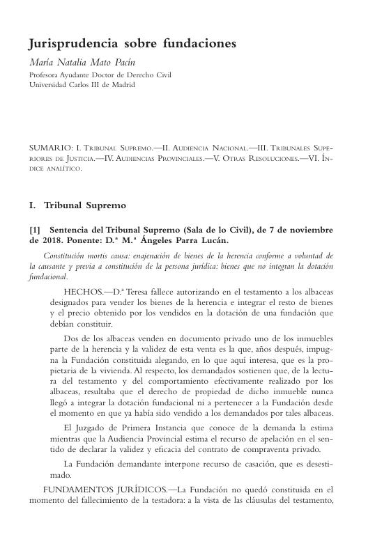 Jurisprudencia sobre fundaciones (2018)
